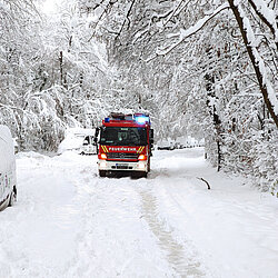 Wegen der Witterung stellten sich auch reguläre Einsätze als herausfordernde Aufgabe dar. So zogen die Einsatzkräfte bereits im Vorfeld auf die Fahrzeuge Schneeketten auf, damit ein Vorankommen gesichert war. Dennoch war auch das Aufstellen einer Drehleiter in einer Feuerwehrzufahrt durch den Schnee sehr schwierig.
